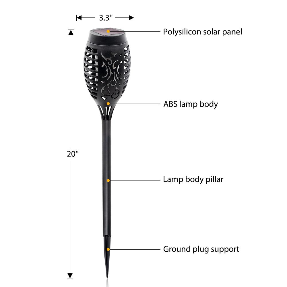 【Widely Used Solar Torch Light】: With IP65 waterproof performance, can withstand any weather when used outdoors. These outdoor solar lights are a great choice for Party Decorations, Home Decor, Landscape, Garden, Yard, Driveway, Pathway, Walkway, Holiday Decorations, and so on.